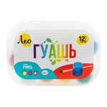 Краска гуашь "Лео" "Учись" набор в пластиковой упаковке LNGB-12 12 цв. х 20 мл - в пластиковом контейнере