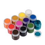 Состав набора: белый, желтый, охра, оранжевый, красный, розовый, фиолетовый, синий, бирюзовый, зеленый, коричневый, черный.