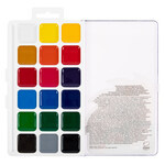 Акварель выпускается в классическом пластиковом пенале компактного размера с прозрачной крышкой. Удобный замок легко открывается и закрывается. Пенал достаточно прочный, выдерживает многократные падения. Крышку можно использовать как палитру для смешивания красок, есть отделение для кисточки .