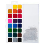 Акварель выпускается в классическом пластиковом пенале компактного размера с прозрачной крышкой. Удобный замок легко открывается и закрывается. Пенал достаточно прочный, выдерживает многократные падения. Крышку можно использовать как палитру для смешивания красок, есть отделение для кисточки .